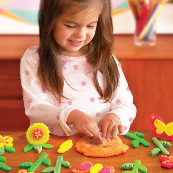Pat out your Tutti Frutti dough, then use the molds to make the basic shapes. Then decorate your butterflies and flowers with additional colors and scents of sparkling dough. Nature is beautiful to behold.