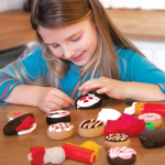 Pour les jours de pluie ou les fêtes, rassemblez-vous pour faire des beignets en utilisant les moules Little Moppet et la pâte à modeler parfumée Tutti Frutti.