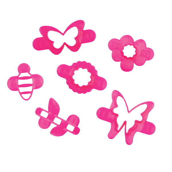 Pat out your Tutti Frutti dough, then use the molds to make the basic shapes. Then decorate your butterflies and flowers with additional colors and scents of sparkling dough. Nature is beautiful to behold.