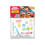 A surprise-package of assorted plastic cookie cutters go hand-in-hand with the Tutti Frutti modeling dough kits.