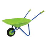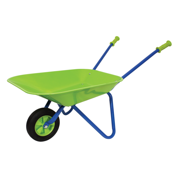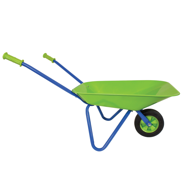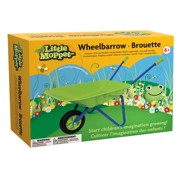 Get ready to do some pushing in the garden with the Little Moppet Wheelbarrow. Transport plants, cut grass, weeds or soil in the solid, green metal wheelbarrow with rubber tire. Adult supervision required and some assembly.