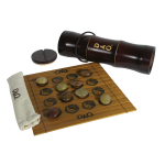 - 1 bamboo playing mat, 2 sets of 4 riverstones, hemp bag, instructions.