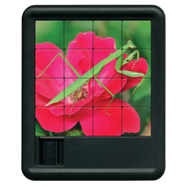 Buds and Bugs Sliding Tiles - Praying Mantis on rose