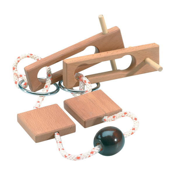 Logical thinking is put to the test in this series of twelve perplexing, hair-pulling wooden puzzles. Remove the bar from the puzzle - Level 3 difficulty.
