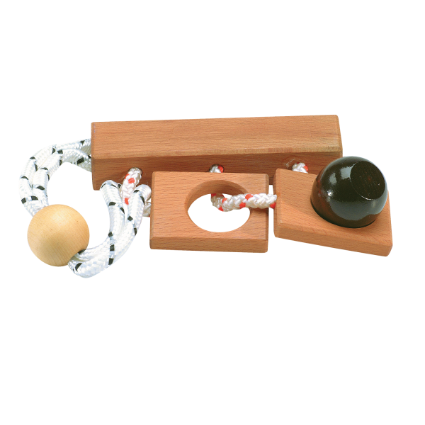 Logical thinking is put to the test in this series of twelve perplexing, hair-pulling wooden puzzles. Remove the small ball from the puzzle - Level 2 difficulty.