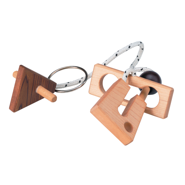 Logical thinking is put to the test in this series of twelve perplexing, hair-pulling wooden puzzles. Remove the ring from the puzzle - Level 3 difficulty.