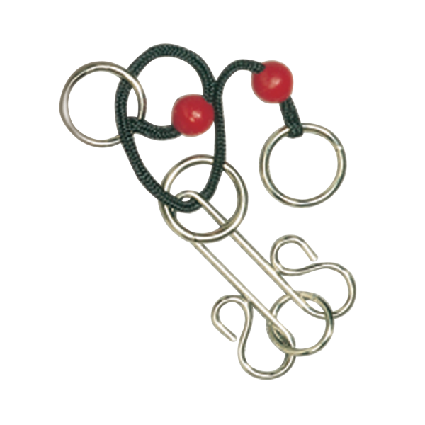 This stylish metal puzzle is wired for fun, keeping fiddling fingers and wandering minds engaged. Remove the ring from the puzzle. Level 2 difficulty.