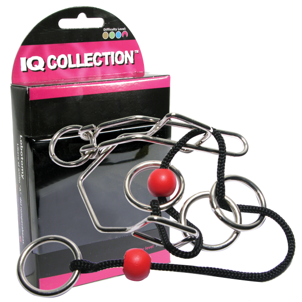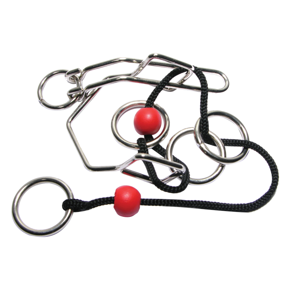 This stylish metal puzzle is wired for fun, keeping fiddling fingers and wandering minds engaged. Remove the metal handle from the puzzle. Level 4 difficulty.