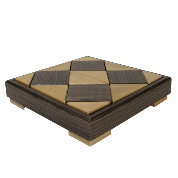 A beautiful addition to any home or office, the goal of this 2-tone wood puzzle is to reposition the free-form shapes back within the raised frame base, creating beautiful two-dimensional wooden patterns. Two patterns can be created.