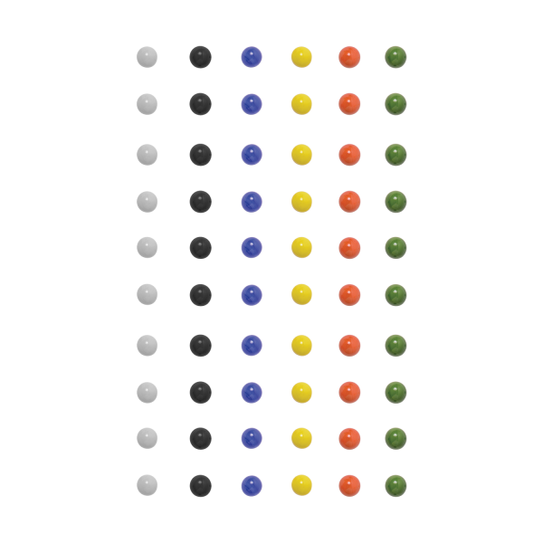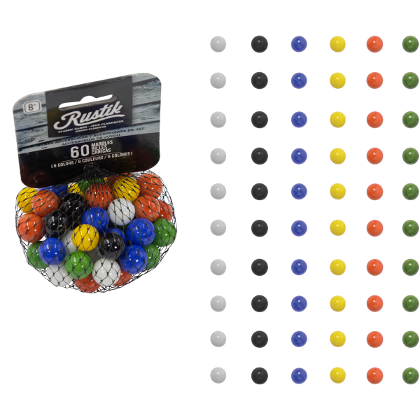 Sixty colorful marbles fit standard Chinese Checker and Tock/Pachisi games.