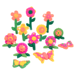 Pat out your Tutti Frutti dough, then use the molds to make the basic shapes. Then decorate your butterflies and flowers with additional colors and scents of sparkling dough. Nature is beautiful to behold.